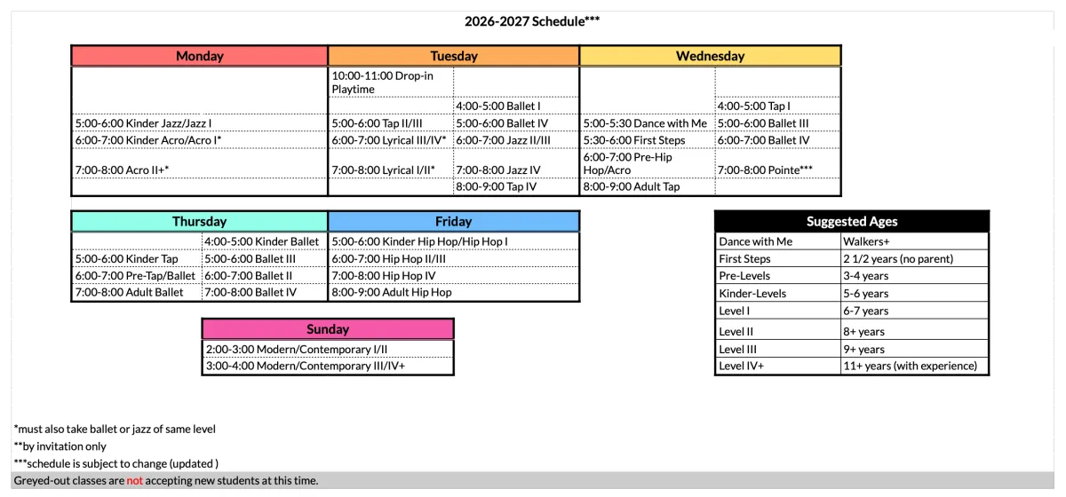 Please check your dancers suggested classes/levels.
